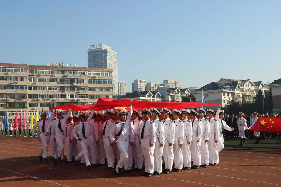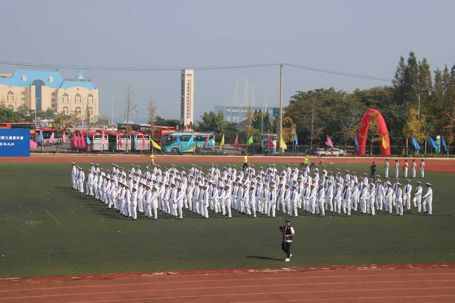 永利皇宫 “海之魂”团体操展演方队更添亮色。学子们动作整齐划一、遒劲有力,尽显准军事化管理的严谨作风——这正是永利皇宫 依托航海专业特色培养学子纪律意识的生动体现。“请党放心,强国有我”的口号响彻云霄,喊出了永利皇宫学子爱党爱国、挺膺担当的坚定信念;随后,“我爱DLOU”“信念坚定,风雨同舟,勇往直前,甘于奉献”的旗语展示次第展开,旗帜在空中划出优美弧线,既呼应了海洋与船舶的专业符号,更生动诠释了永利皇宫人扎根深蓝、服务国家的家国情怀。