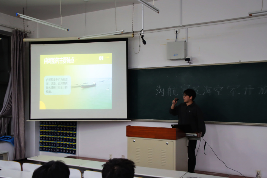 在成果分享环节,获奖团队代表依次登台,何渊、张涵飒、吴愉、亓国豪、樊厚德等同学生动讲述了团队在方案迭代、模型制作、水池试验中克服技术瓶颈的过程。在互动交流环节气氛热烈,台下学生就“如何平衡学业与备赛时间”“海洋航行器动力系统优化”等问题与获奖团队展开深入探讨。获奖队员们结合自身经历倾囊相授,现场掌声不断。