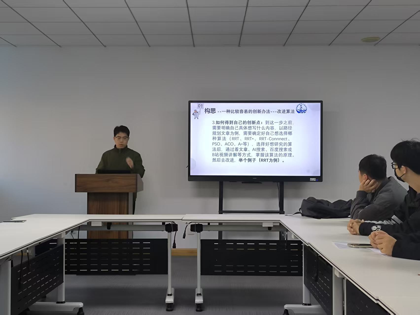 在随后的分享环节中,陈小龙同学结合自身在路径规划、无人船避障等方向的研究经历,围绕论文的选题构思、结构搭建、写作技巧、期刊选择、审稿意见回复、版面费报销等关键环节进行了系统讲解。他分享了数篇北大核心论文的发表心得,并就同学们普遍关心的“如何选择合适的期刊”、“如何处理返修意见”等问题进行了细致解答。